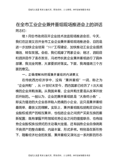 在全市工业企业兼并重组现场推进会上的讲话.doc