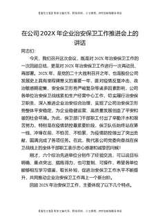 在公司202X年企业治安保卫工作推进会上的讲话.doc