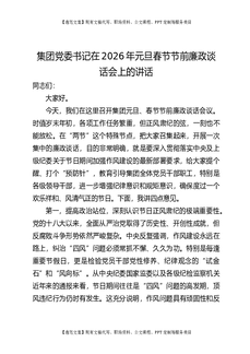 集团党委书记在2026年元旦春节节前廉政谈话会上的讲话.docx