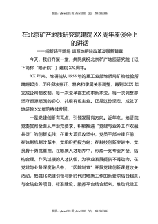 在北京矿产地质研究院建院XX周年座谈会上的讲话.docx