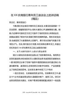 在XX农商银行青年员工座谈会上的讲话稿(精品).docx