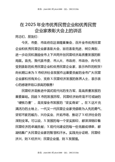 在2025年全市优秀民营企业和优秀民营企业家表彰大会上的讲话.doc