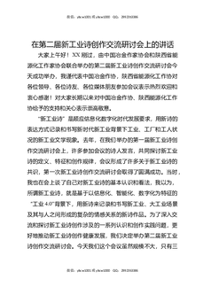 在第二届新工业诗创作交流研讨会上的讲话.docx