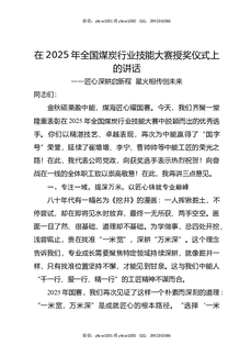 在2025年全国煤炭行业技能大赛授奖仪式上的讲话.docx