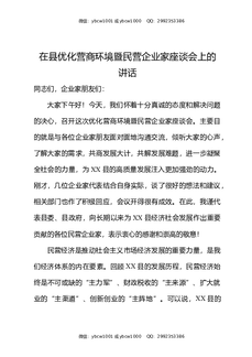 在县优化营商环境暨民营企业家座谈会上的讲话.docx