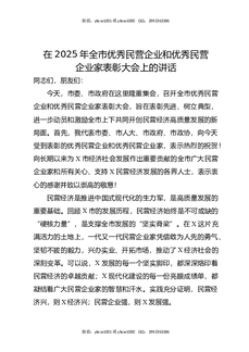 在2025年全市优秀民营企业和优秀民营企业家表彰大会上的讲话.docx