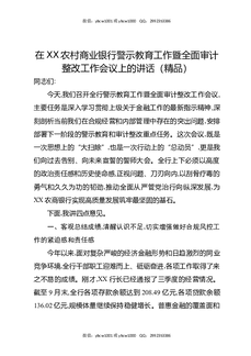 在XX农村商业银行警示教育工作暨全面审计整改工作会议上的讲话(精品).docx