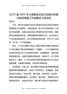 在XX县2025年三季度经济运行形势分析暨冲刺四季度工作部署会上的讲话.docx