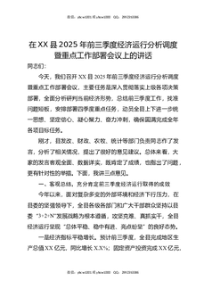 在XX县2025年前三季度经济运行分析调度暨重点工作部署会议上的讲话.docx