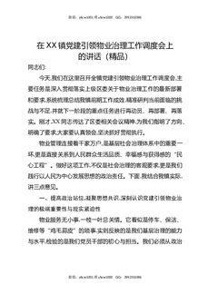在XX镇党建引领物业治理工作调度会上的讲话(精品).docx