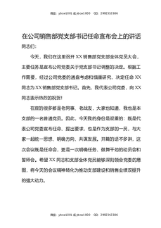 在公司销售部党支部书记任命宣布会上的讲话.docx