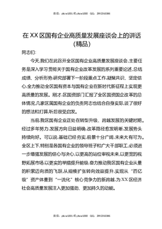 在XX区国有企业高质量发展座谈会上的讲话(精品).docx