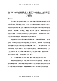 在XX市产业高质量发展工作推进会上的讲话(精品).docx