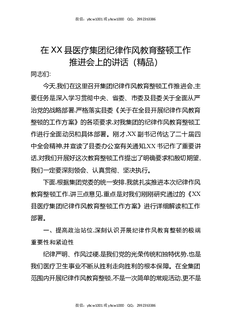 在XX县医疗集团纪律作风教育整顿工作推进会上的讲话(精品).docx