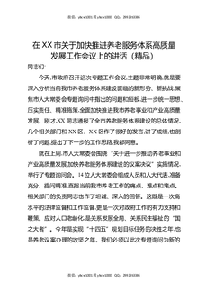 在XX市关于加快推进养老服务体系高质量发展工作会议上的讲话(精品).docx