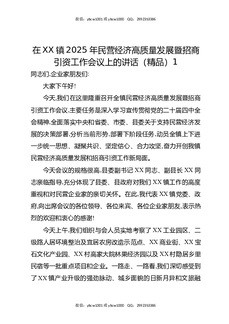 在XX镇2025年民营经济高质量发展暨招商引资工作会议上的讲话(精品)1.docx