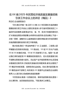 在XX镇2025年民营经济高质量发展暨招商引资工作会议上的讲话(精品)2.docx