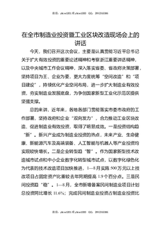 在全市制造业投资暨工业区块改造现场会上的讲话.docx