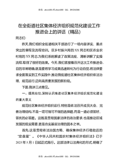 在全街道社区集体经济组织规范化建设工作推进会上的讲话(精品).docx