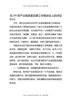 在XX市产业高质量发展工作推进会上的讲话.docx