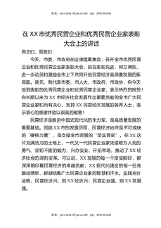 在XX市优秀民营企业和优秀民营企业家表彰大会上的讲话.docx