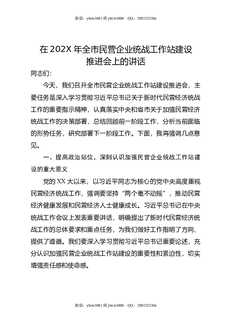 在202X年全市民营企业统战工作站建设推进会上的讲话.doc