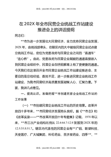 在202X年全市民营企业统战工作站建设推进会上的讲话提纲.doc