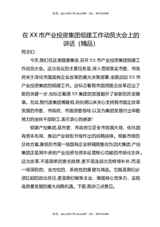 在XX市产业投资集团组建工作动员大会上的讲话(精品).docx