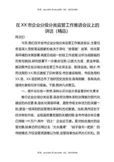 在XX市企业分级分类监管工作推进会议上的讲话(精品).docx