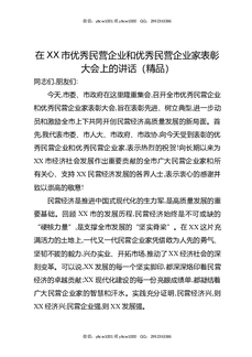 在XX市优秀民营企业和优秀民营企业家表彰大会上的讲话(精品).docx
