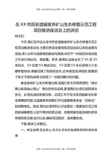 在XX市历史遗留废弃矿山生态修复示范工程项目推进座谈会上的讲话.docx