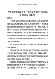 在XX市市属国有企业高质量发展工作推进会上的讲话(精品).docx