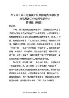 在2025年公司落实上级集团党委巡察反馈意见整改工作专题党委会上的讲话(精品).docx