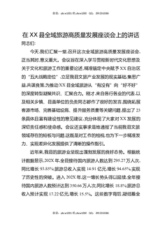 在XX县全域旅游高质量发展座谈会上的讲话.docx