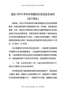 国企202X年年末专题民主生活会讲话主持词(五个带头).docx