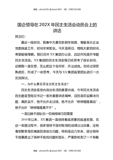 国企领导在202X年民主生活会动员会上的讲话.docx