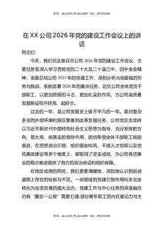 在XX公司2026年党的建设工作会议上的讲话.docx