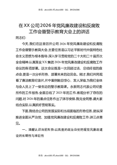 在XX公司2026年党风廉政建设和反腐败工作会暨警示教育大会上的讲话.docx