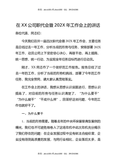 在XX公司职代会暨202X年工作会上的讲话.docx
