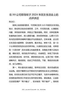 在XX公司领导班子202X年民主生活会上的点评讲话.docx