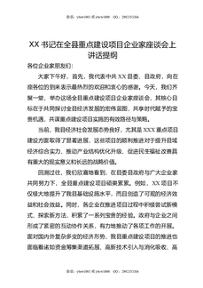 XX书记在全县重点建设项目企业家座谈会上讲话提纲.docx