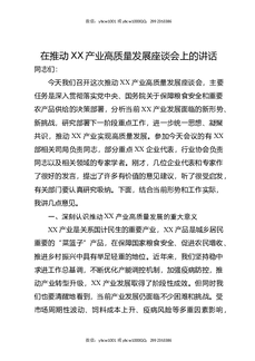 在推动XX产业高质量发展座谈会上的讲话.docx