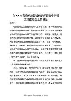 在XX市营商环境领域信访问题集中治理工作推进会上的讲话.docx