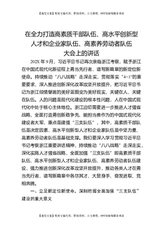 在全力打造高素质干部队伍,高水平创新型人才和企业家队伍,高素养劳动者队伍大会上的讲话.doc