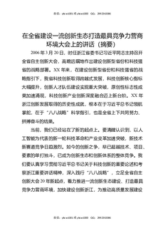 在全省建设一流创新生态打造最具竞争力营商环境大会上的讲话(摘要).docx