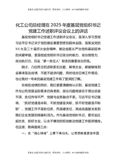 化工公司总经理在2025年度基层党组织书记党建工作述职评议会议上的讲话.docx