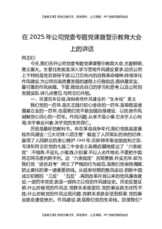 在2025年公司党委专题党课暨警示教育大会上的讲话.docx