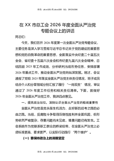 在XX市总工会2026年度全面从严治党专题会议上的讲话.docx
