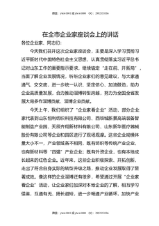 在全市企业家座谈会上的讲话.doc