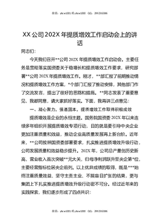 XX公司202X年提质增效工作启动会上的讲话.docx